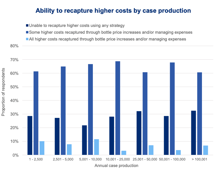 “Wineries remain cautious on price changes. About half plan to hold prices steady, and about a quarter intend to take small increases on select items. Only a small portion anticipates broad price reductions. Most wineries report at least some successful cost recovery from price inflation, primarily through disciplined expense management and selective price adjustments.”