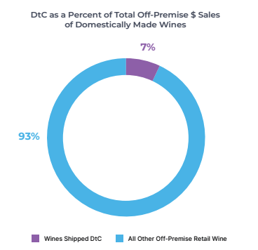 “In 2025, winery DtC wine shipments represented 7% of the total off-premise market for domestically made wines...The total estimated off-premise sales of domestic table and sparkling wines was $51.5 billion. Representing approximately 7% of that market at $3.7 billion, the DtC channel declined from 2024, when it made up 8% of domestic off-premise sales. For perspective, this is down from 12% in 2021.”